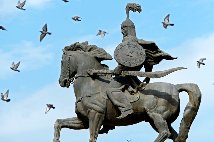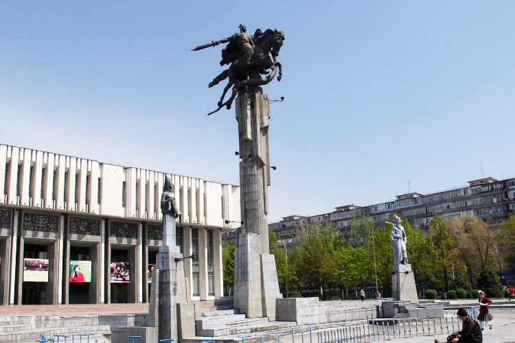 Больше всего крупных памятников в Кыргызстане установили герою одноименного эпоса Манасу. Эпос самый большой в истории мирового фольклора. Он сочетает историческую действительность и мифы. Манас — легендарный батыр, который объединил кыргызские племена и вернул им родину.