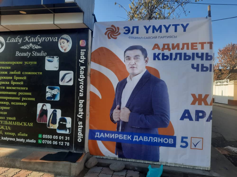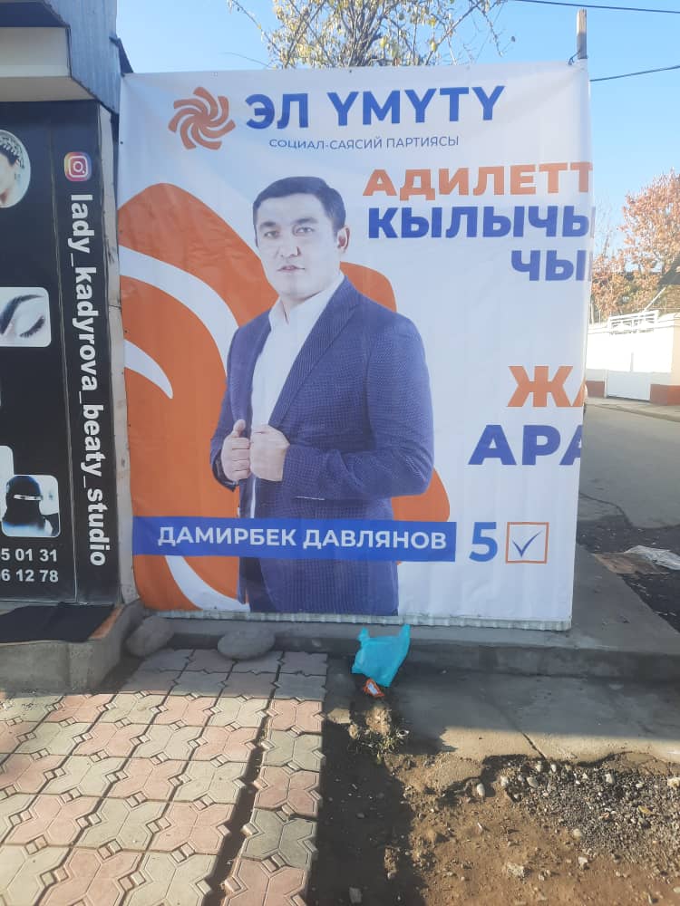 «Так он проводит незаконную агитацию, грубо нарушая требования указа президента Садыра Жапарова. Для кандидата в депутаты, кстати, бывшего сотрудника МВД и председателя квартального комитета, даже указ главы государства — не указ. Возникает вопрос, есть ли договор о вывешивании баннера с председателем квартального комитета, ведь домкомы не имеют права вмешиваться в агитацию претендентов», — говорит Дилмурад Рахманов.