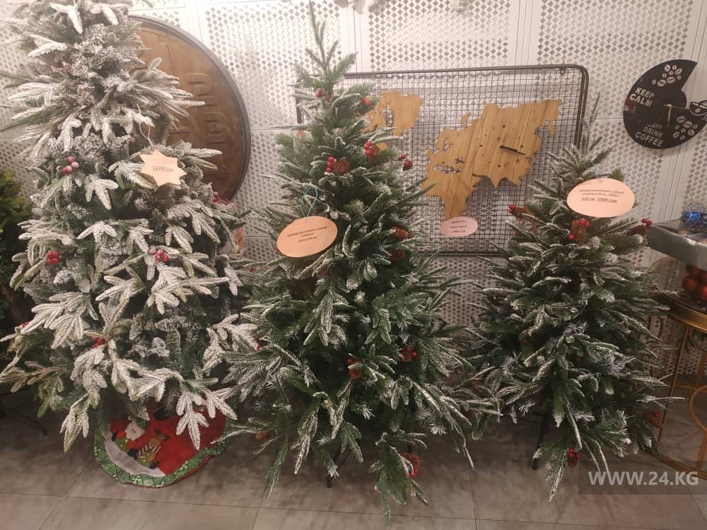 Самые дешевые на рынках и в магазинах искусственные сосны — от 2,5 тысячи сомов за 1,2 метра до 4 тысяч за 1,8 метра.
