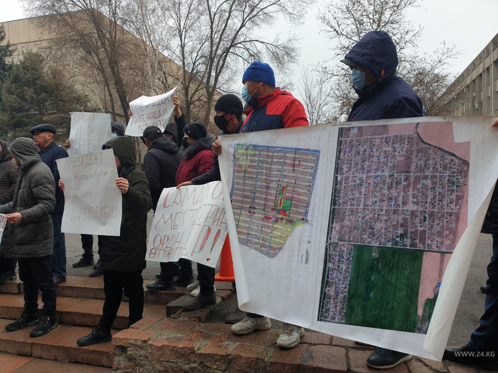 В Бишкеке возле здания Дома правительства проходит митинг жителей Аламединского района.