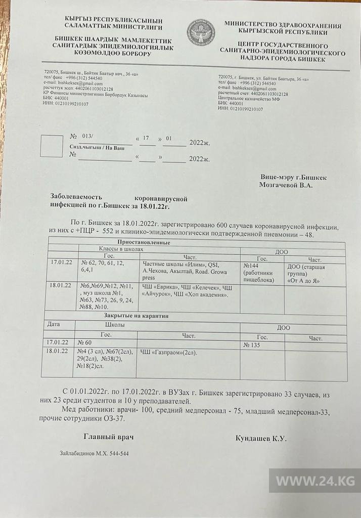 Резкий рост COVID-19. В Бишкеке семь школ и один детсад переведены на онлайн