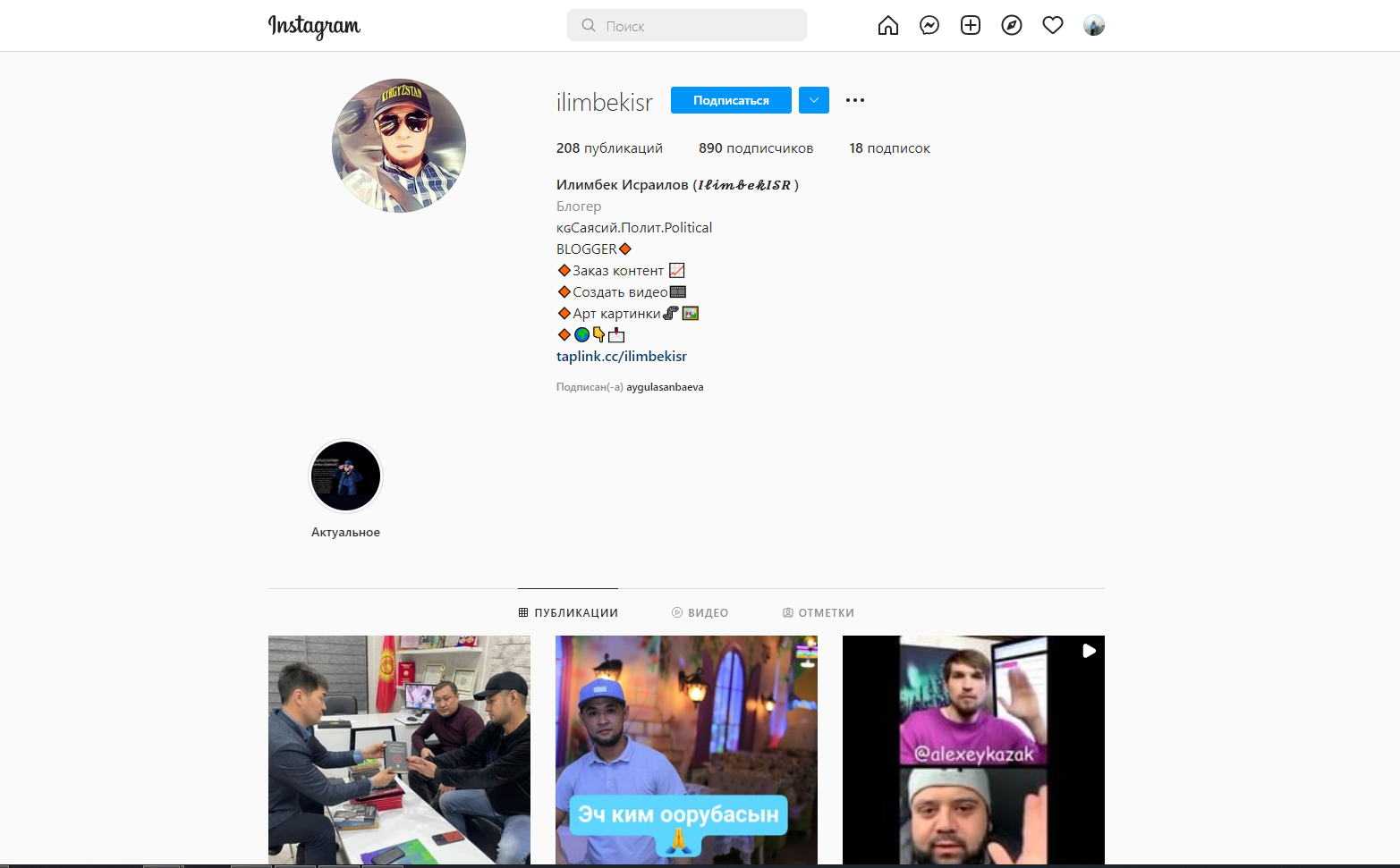 В Instagram у Илимбека Исраилова 980 подписчиков, в Facebook — 4,9 тысячи человек.