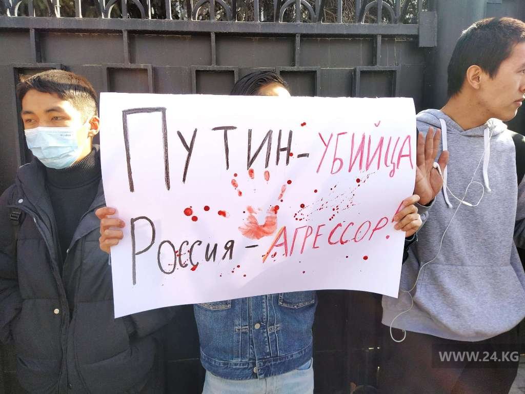 У посольства Российской Федерации в Бишкеке проходит третья по счету акция протеста против специальной военной операции в Украине.