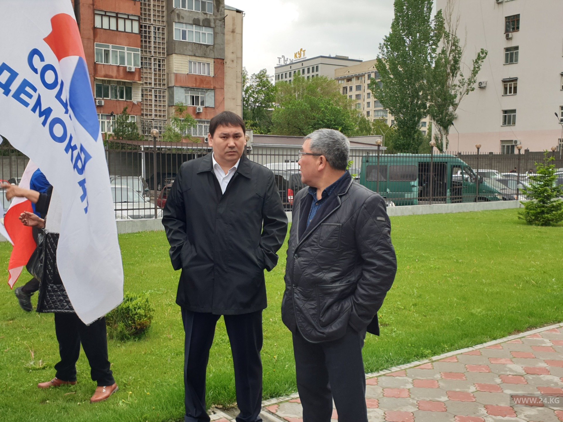На митинг также пришли экс-депутат парламента Рыскелды Момбеков и сын бывшего президента Сеидбек Атамбаев.