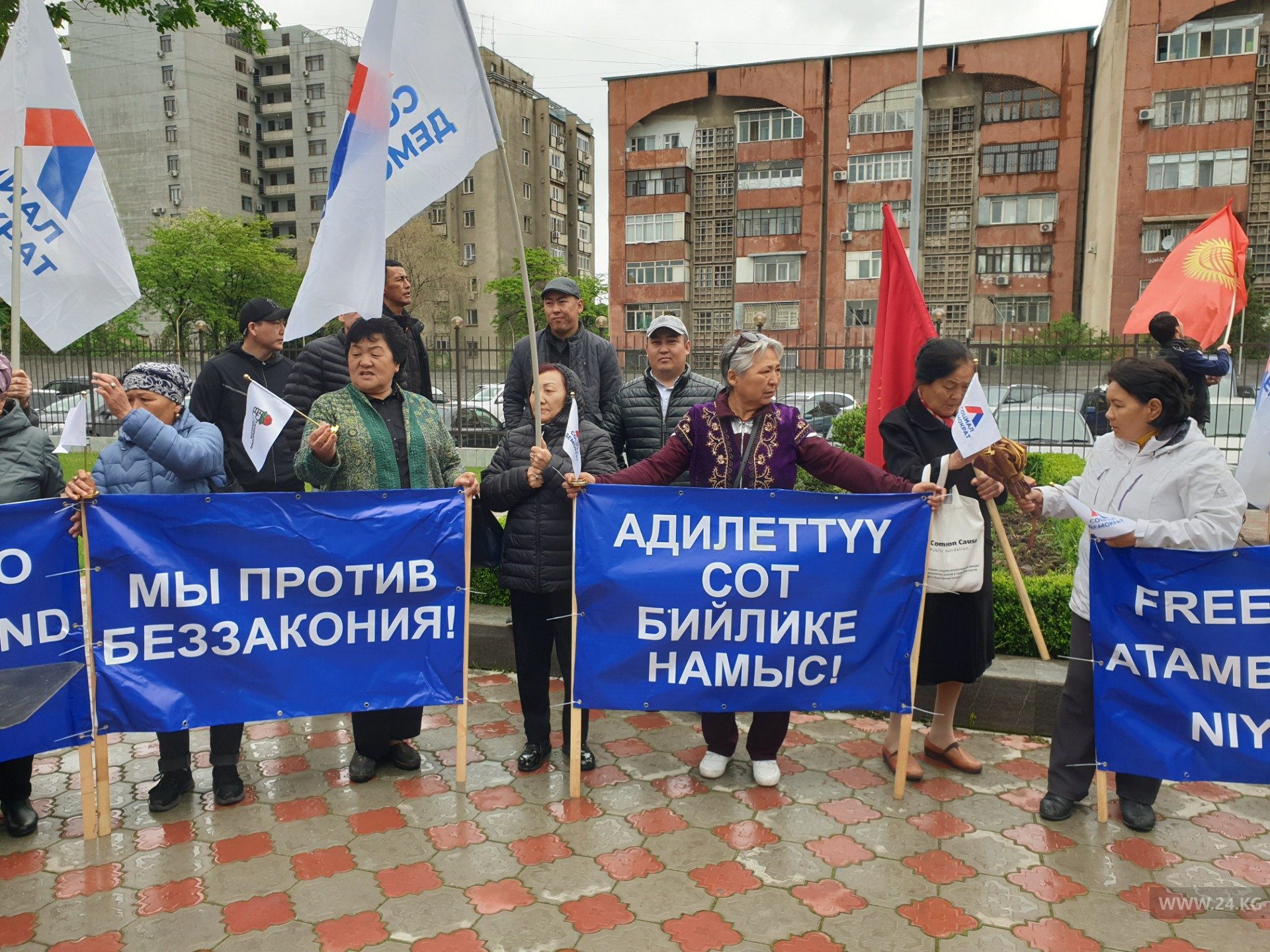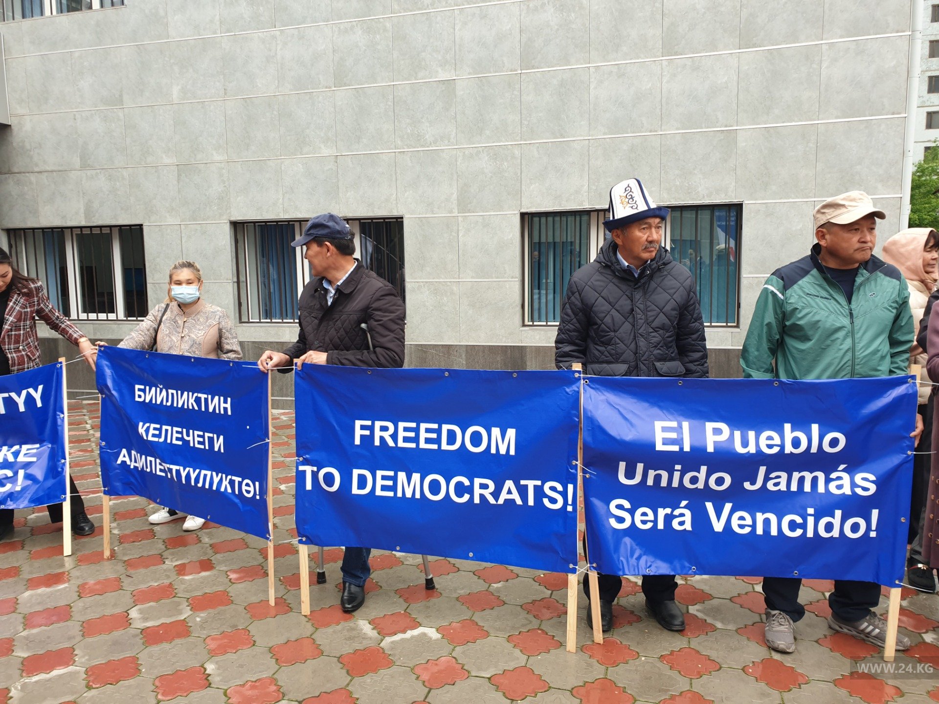 Около здания суда проходит митинг в поддержку бывшего президента Алмазбека Атамбаева.