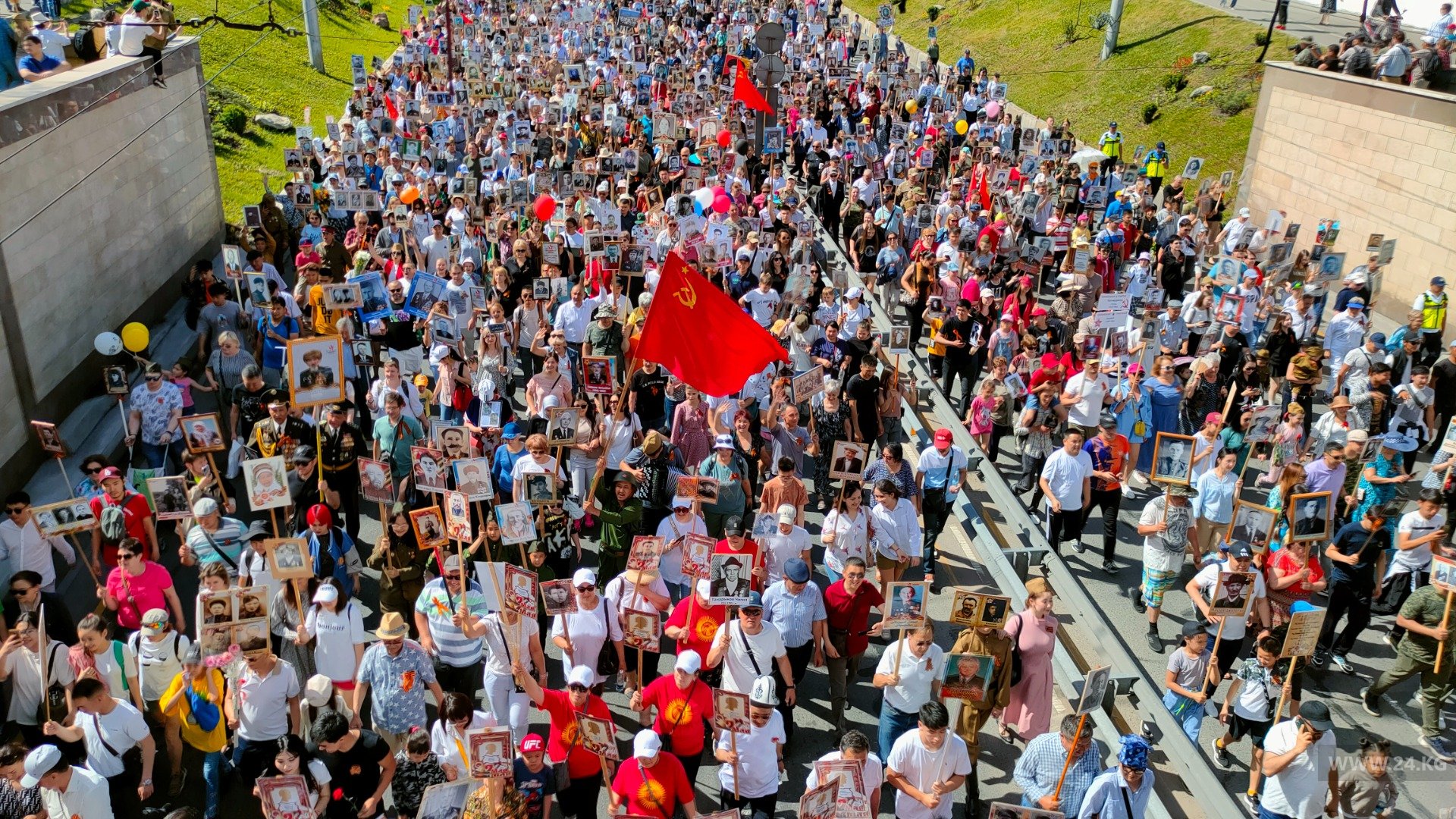 Шествие началось в 9.00 от Южных ворот. Колонна двигалась по улице Байтика Баатыра, которая переходит в улицу Абдрахманова.