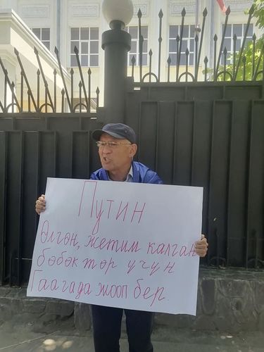 Сегодня у здания посольства России в Бишкеке прошел одиночный пикет активиста Ондуруша Токтонасырова. Он требовал защитить права детей в Украине.