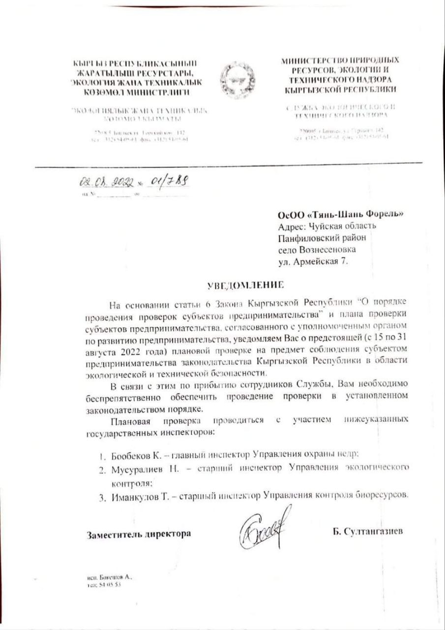 Отметим, сегодня Илгиз Шаменов побывал на допросе в ГКНБ, а в его компании «Тянь-Шань Форель» началась проверка, инициированная Минсельхозом и Министерством природных ресурсов.