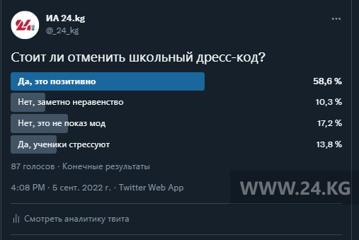 Пользователи Twitter тоже в большинстве отдали голоса против дресс-кода в учебных заведениях.