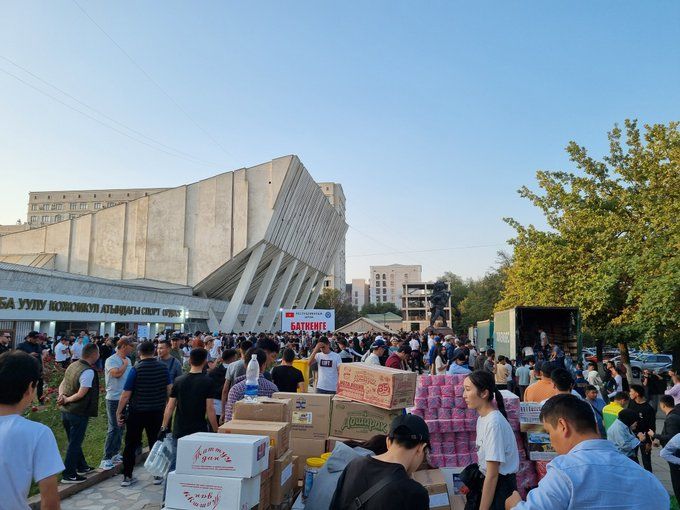 Бишкекчане также активно собирают продукты питания, одежду, средства гигиены, медикаменты и другие необходимые вещи. Самая крупная точка сбора — Дворец спорта имени Кожомкула. День и ночь волонтеры принимают помощь, упаковывают и направляют в Баткен.