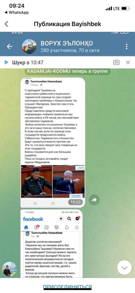 «ГКНБ призывает пользователей социальных сетей и представителей СМИ не поддаваться на провокации и не давать возможности заинтересованным силам использовать свои персональные данные против интересов Кыргызской Республики и ее граждан», — подчеркнули в пресс-центре.