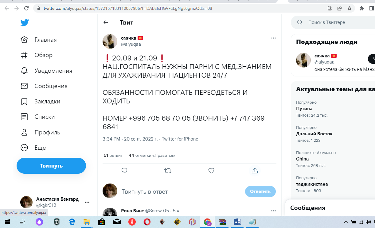 Отметим, что пользователи соцсети Twitter пишут о том, что в госпиталь нужны люди с медицинским образованием для ухаживания за пациентами.