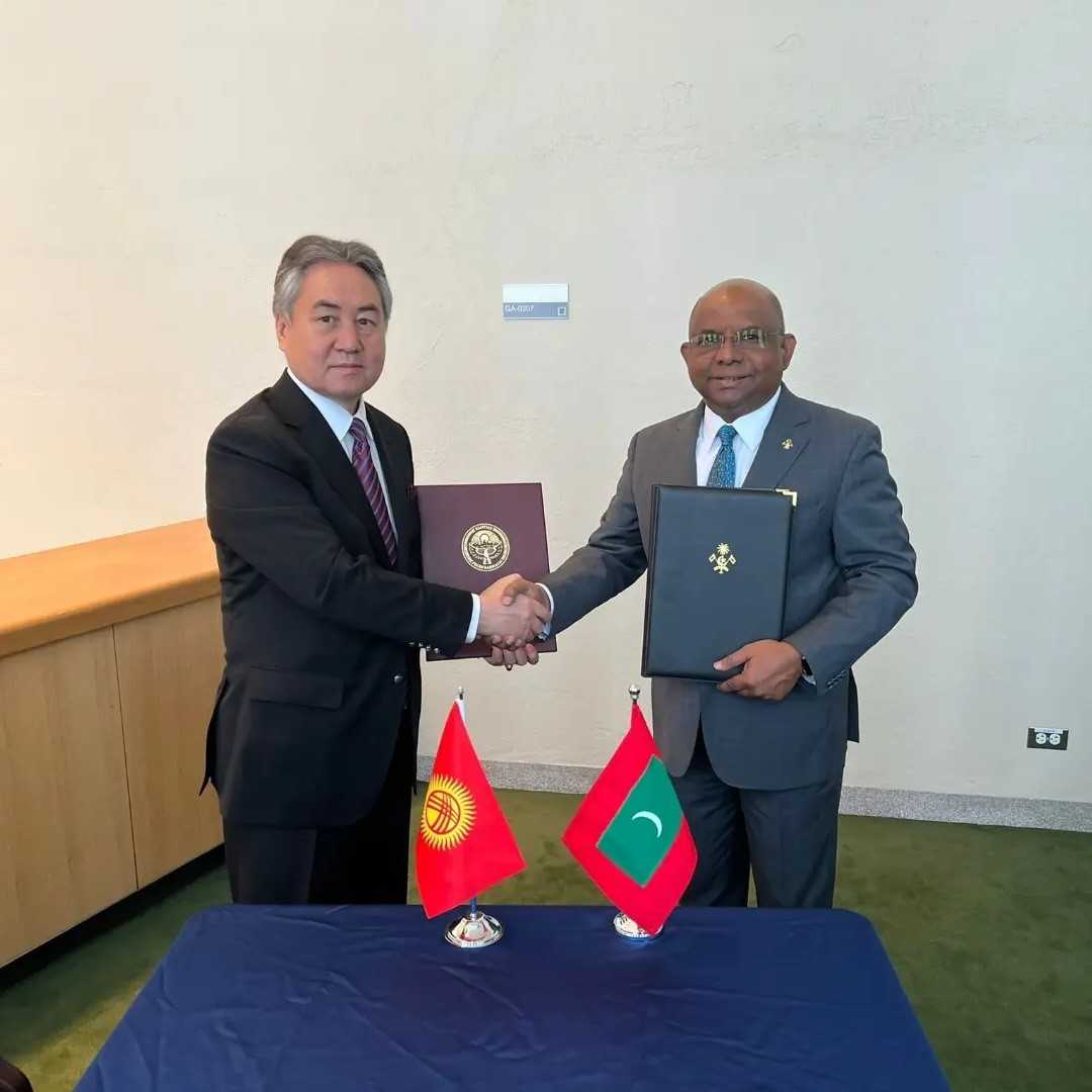 По ее данным, главы внешнеполитических ведомств провели вчера переговоры на полях 77-й сессии Генеральной ассамблеи ООН. Стороны подписали Соглашение между кабинетом министров Кыргызской Республики и правительством Мальдивской Республики о взаимном освобождении от визовых требований.