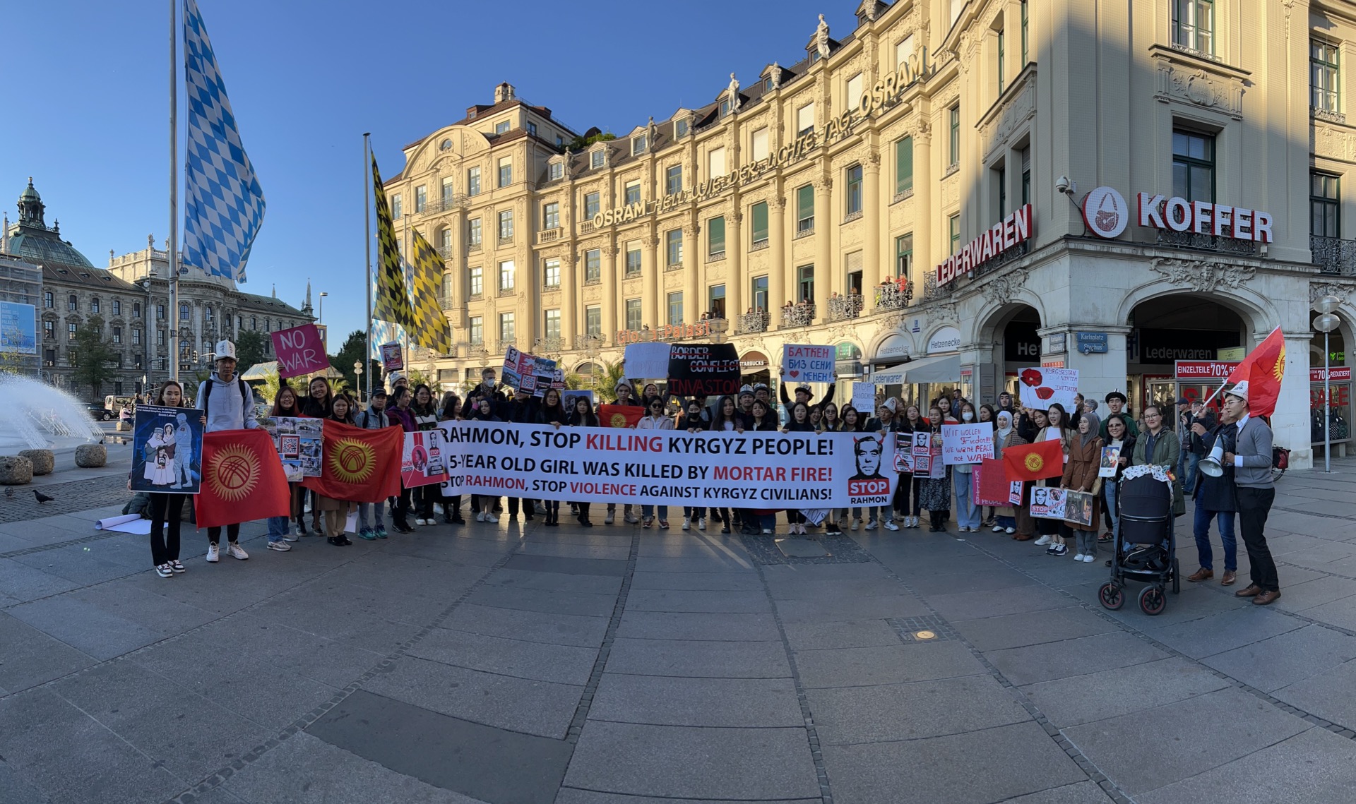 В Мюнхене (Германия) прошел митинг кыргызстанцев против военной агрессии Таджикистана. Об этом 24-kg.com сообщила одна из участниц Бермет Абдрахманова.