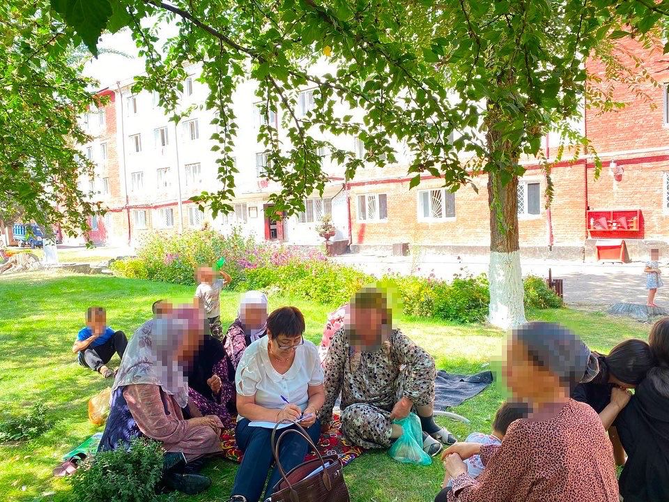 Акыйкатчи Атыр Абдрахматова и ряд сотрудниц аппарата провели опрос женщин, вынужденно бежавших из Баткенской области и расселенных в общежитиях № 1 и № 3 Ошского государственного университета.