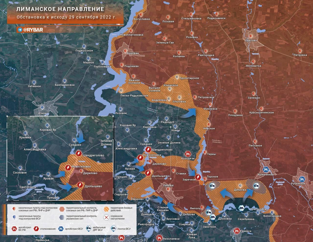 - Украинские войска продолжали наступление севернее Лимана и на восточном берегу реки Оскол.