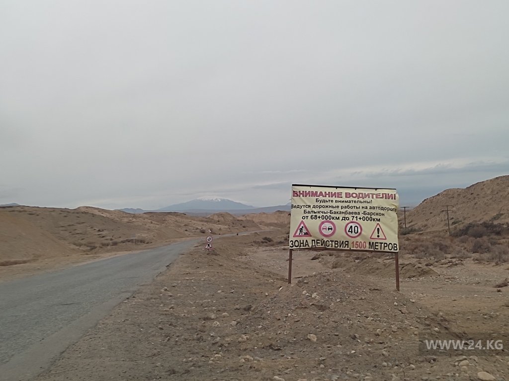 Реконструкцию участка с нулевого по 71-й километр ведет ОсОО «Кыргыз жол курулуш». Работы идут активно: тут и разнообразная строительная техника, и рабочие с лопатами и измерительными инструментами. От старого асфальта ничего не осталось. Зато есть широкая земляная дорога, по которой на обычной легковушке можно ехать со скоростью 20 километров в час. Чуть быстрее проезжают такие участки внедорожники и маршрутки, оставляя за собой клубы пыли.