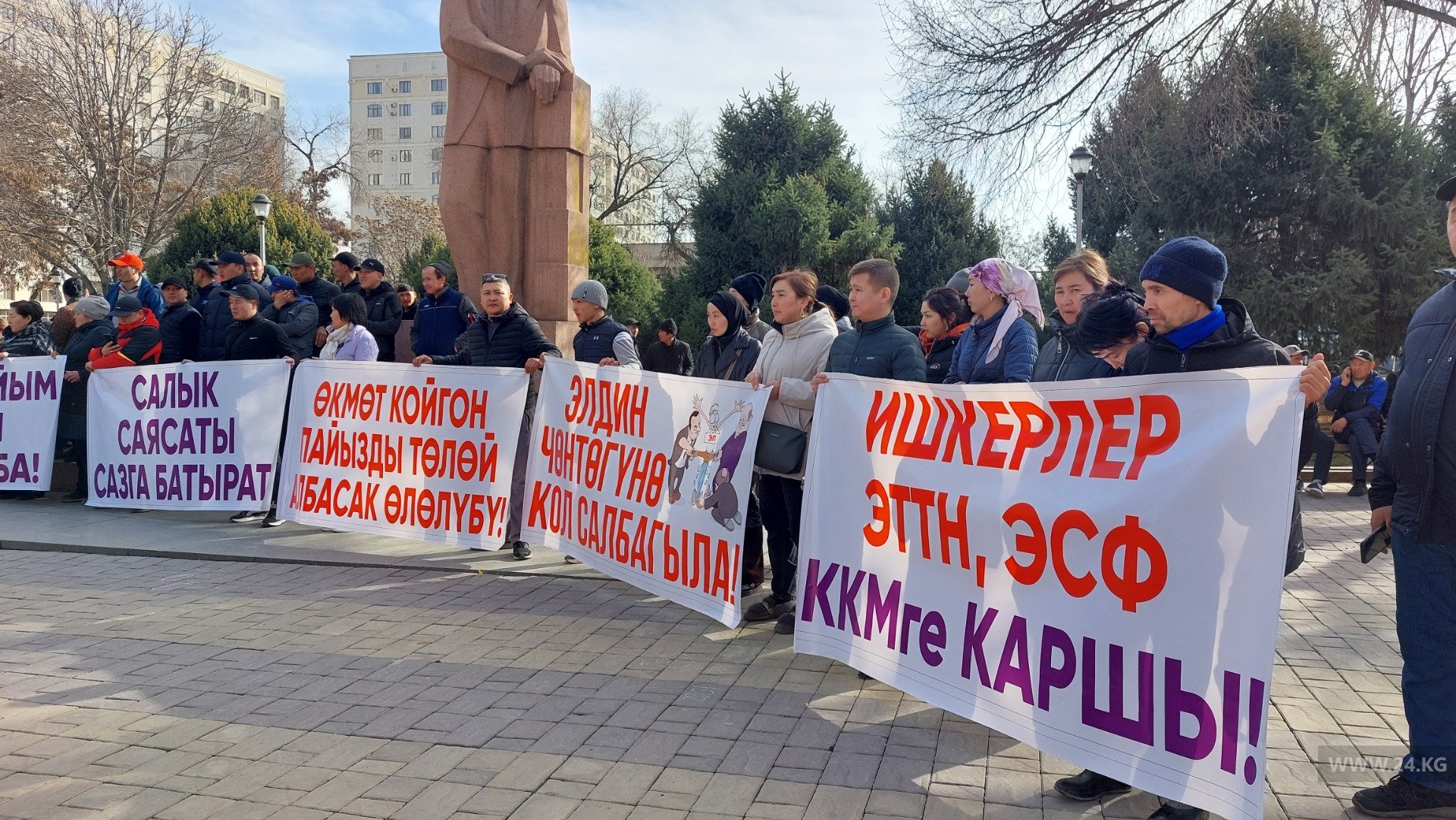 На акцию протеста пришли предприниматели, торгующие на рынках «Дордой-Дыйкан», «Дордой-моторс», «Азиз базар», Ошском базаре и других.
