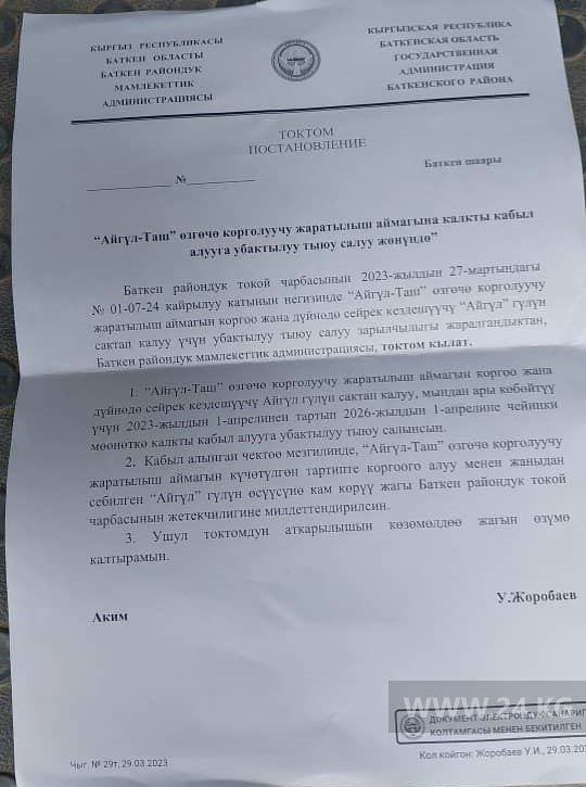 Природный заповедник «Айгуль-Таш» закрыли для посещения туристов на три года. Об этом 24-kg.com сообщили в Лесной службе со ссылкой на постановление райгосадминистрации.