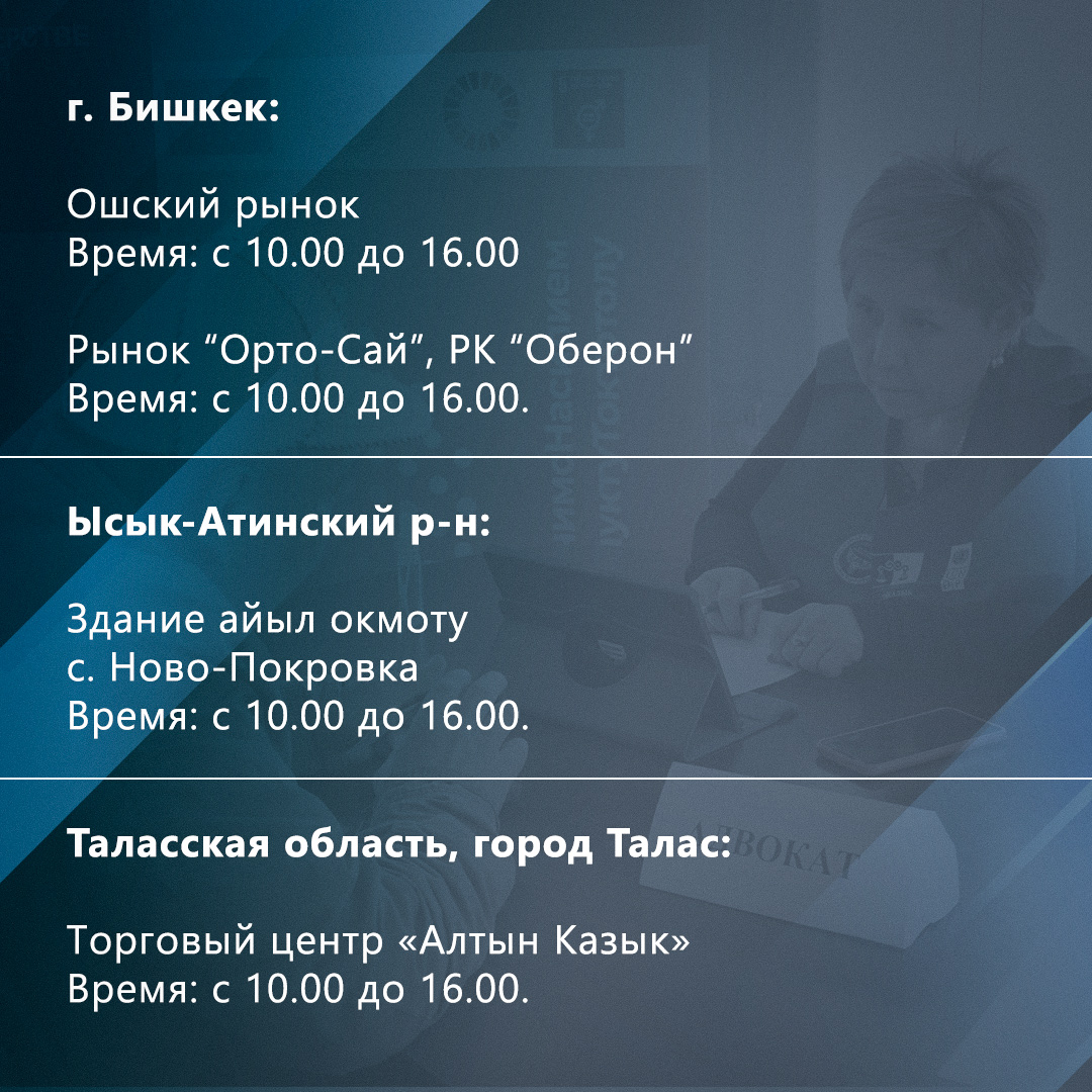 В Кыргызстане пройдет акция по оказанию бесплатной консультационно-правовой помощи населению. Об этом сообщили в Службе юридической помощи при Минюсте.
