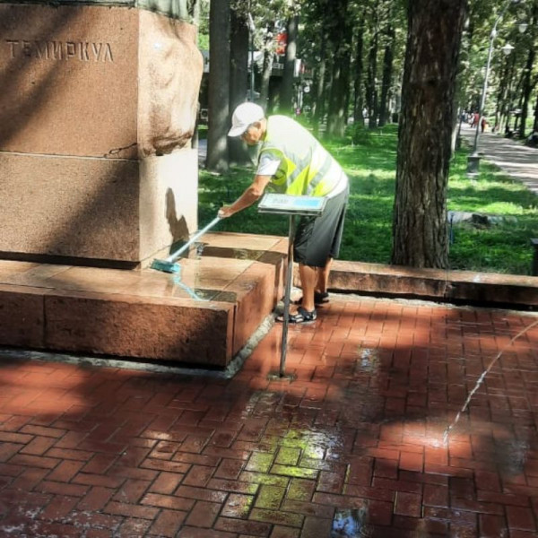 Ранее по поручению акимиата Первомайского района памятники помыли в сквере имени Тоголока Молдо.