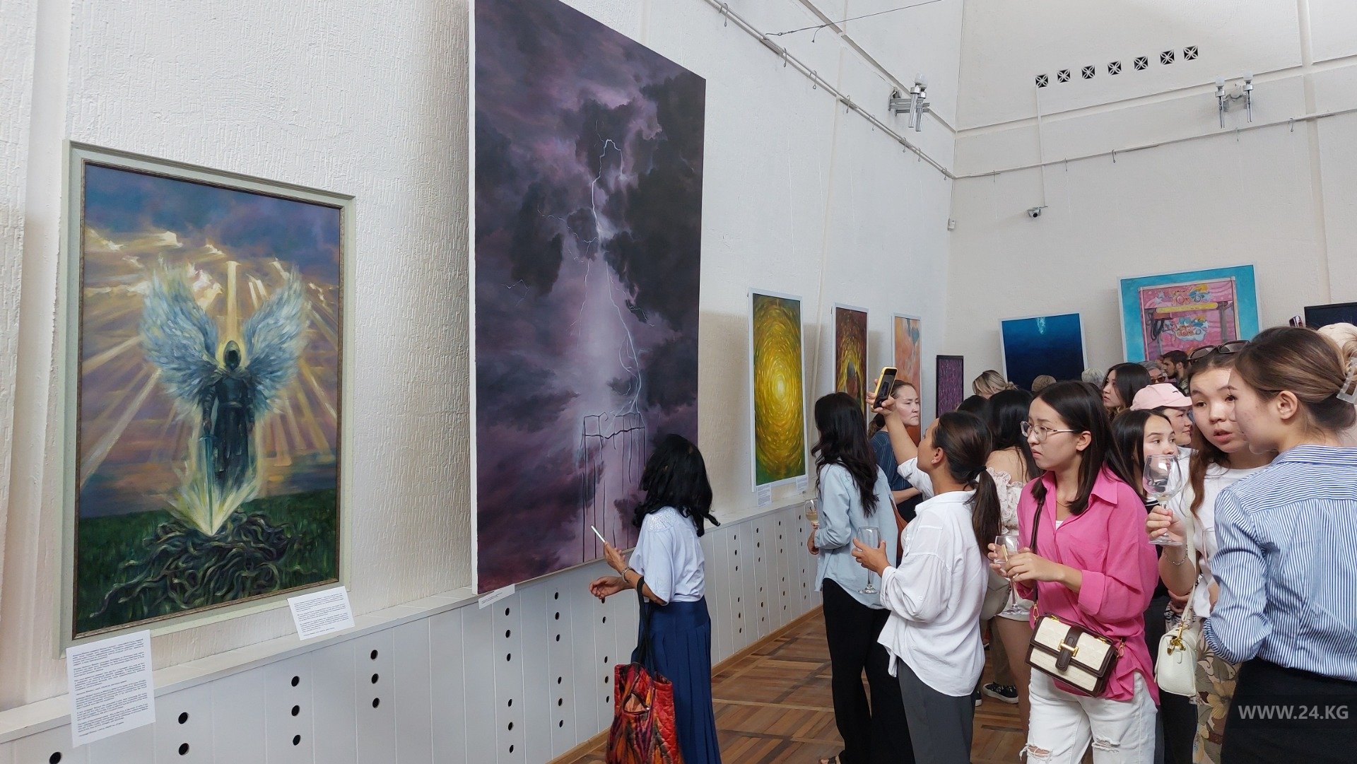 В Бишкеке в Кыргызском национальном музее изобразительных искусств имени Гапара Айтиева проходит персональная выставка дочери бывшего президента Алмазбека Атамбаева, художницы, иллюстратора Алии Шагиевой «Дуальность: Свет, Тьма и то, что между ними».