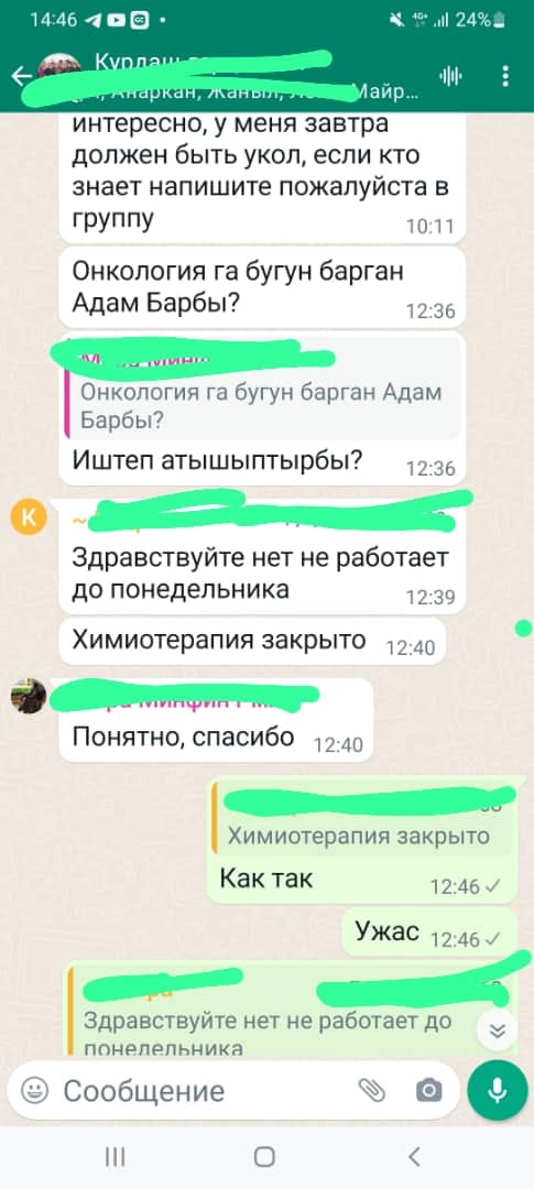 Гульмира Абдыразакова добавила, что у онкологического заболевания есть своя специфика, как курсы химиотерапии. «Их нельзя пропускать, строго через каждые 21 день нужно получать следующий курс. Неделя — это много, слишком много по времени. У онкологических пациентов время идет не на дни, иногда даже на часы...» — написала она.