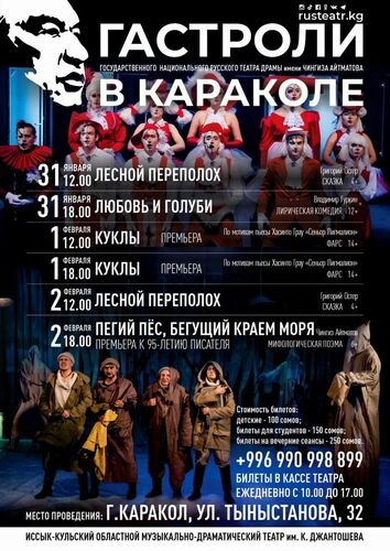 Актеры Русского театра драмы имени Чингиза Айтматова представят зрителям всеми любимые спектакли для детей и взрослых. Подробнее