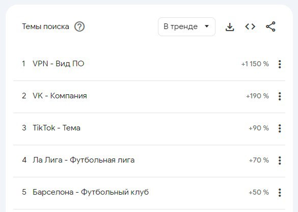 На втором и третьем местах по поиску в интернете стоят социальные сети «ВКонтакте» и TikTok. «ВКонтакте» за последние семь лет искали на 170 процентов больше, чем в предыдущий период времени, а TikTok — на 90 процентов.