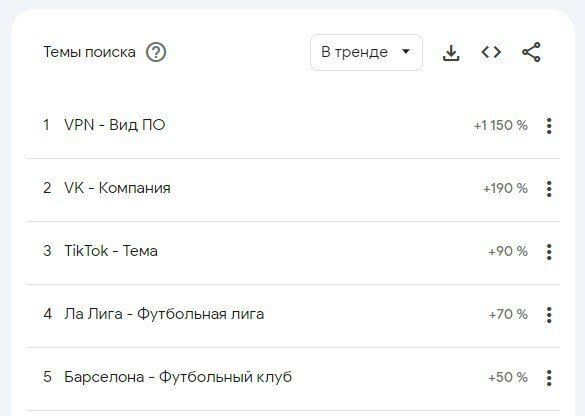 На четвертом и пятом местах — поиск футбольной лиги «Ла Лига» и футбольной команды «Атлетико мадрид».