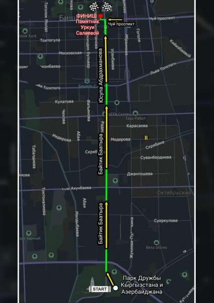 По ее данным, велопробег, посвященный дню рождения города, стартует в 10.00 в парке Дружбы Кыргызстана и Азербайджана. Регистрация состоится у старта с 9.00 до 9.30. Финишируют участники в сквере имени Уркуи Салиевой.