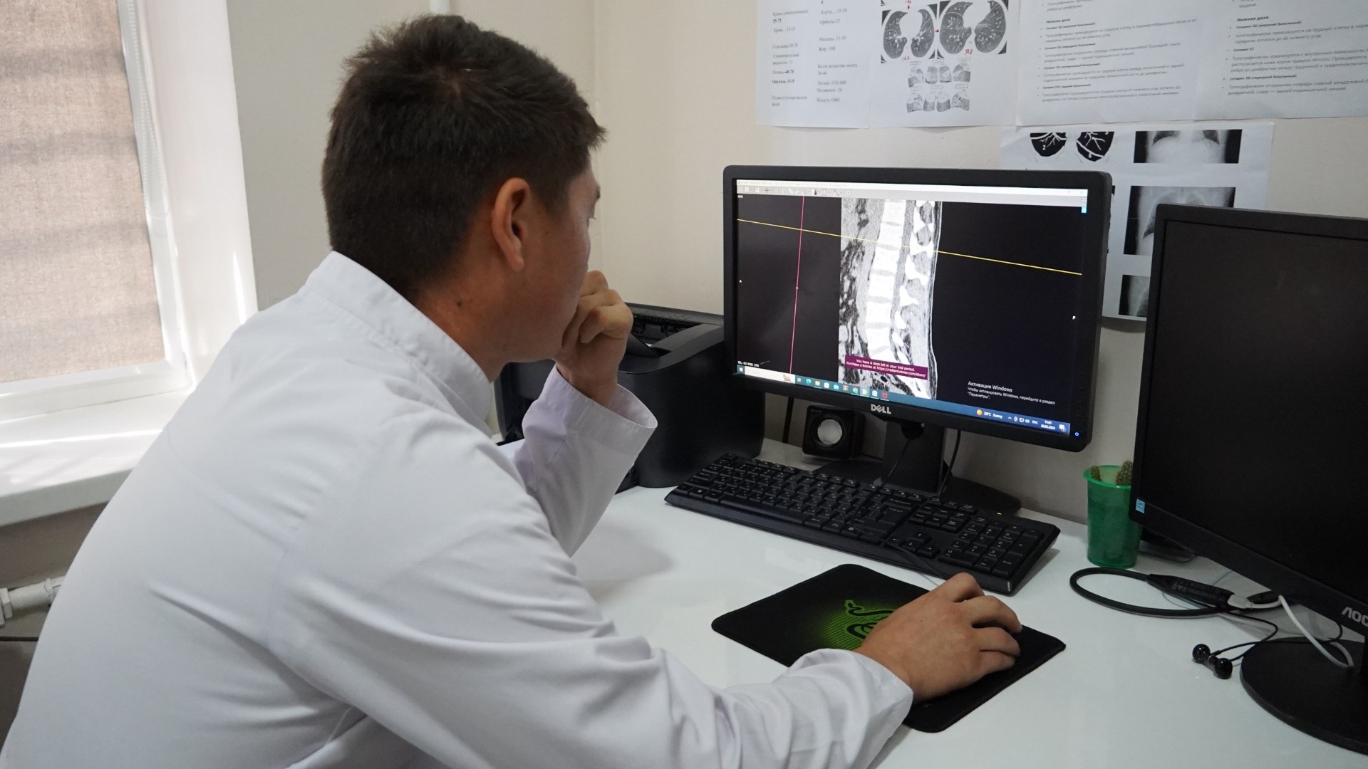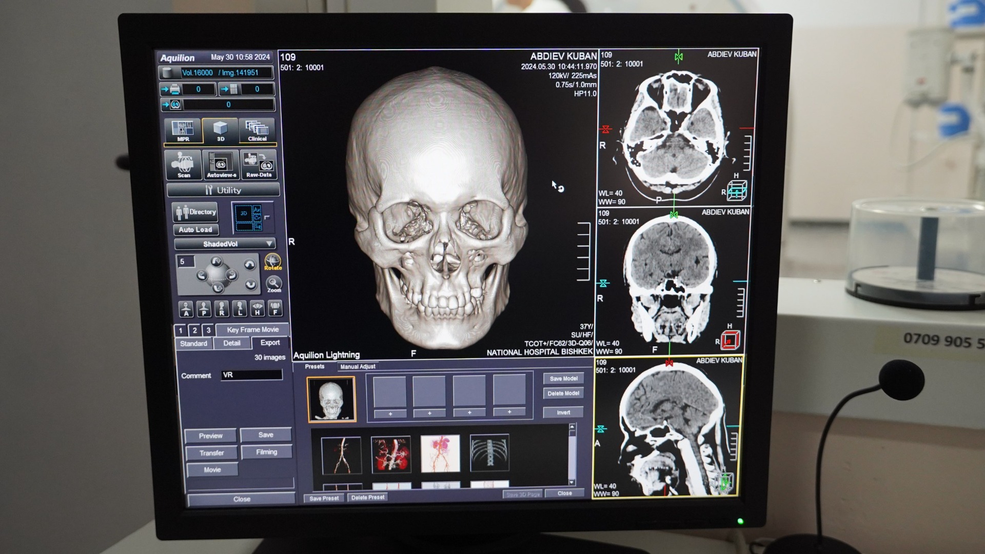 По словам главного врача Нацгоспиталя Бакыта Тологонова, разработан прейскурант цен для услуг КТ-диагностики — стоимость одного исследования составляет 1 тысячу 400 сомов.