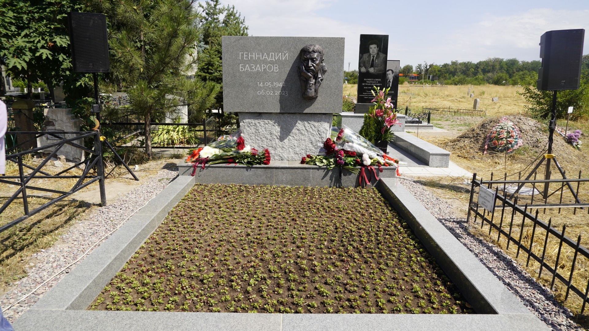 Церемония открытия памятника народному артисту Кыргызской Республики кинорежиссеру Геннадию Базарову прошла сегодня на Ала-Арчинском кладбище.