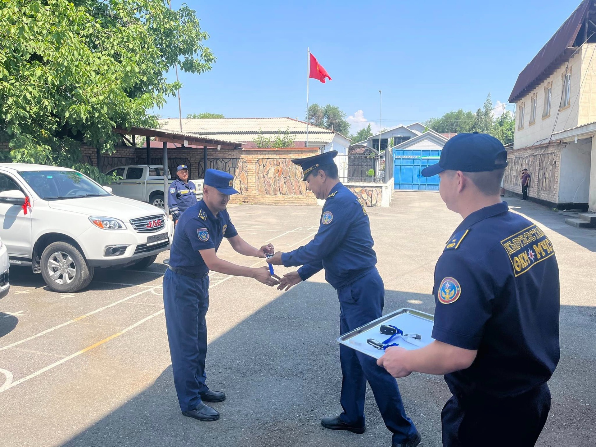 Аварийно-спасательные машины JAC T6, 2024 года выпуска, сегодня вручили отделам чрезвычайных ситуаций Ноокенского, Сузакского районов и города Таш-Кумыра.