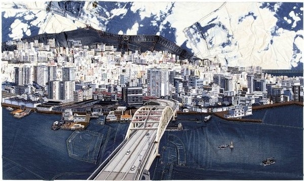 Художница Чхве Со Ен создает городские пейзажи из старых джинсов, которые можно найти в секонд-хенде. Ее работы, размещенные в Сети, набирают популярность.