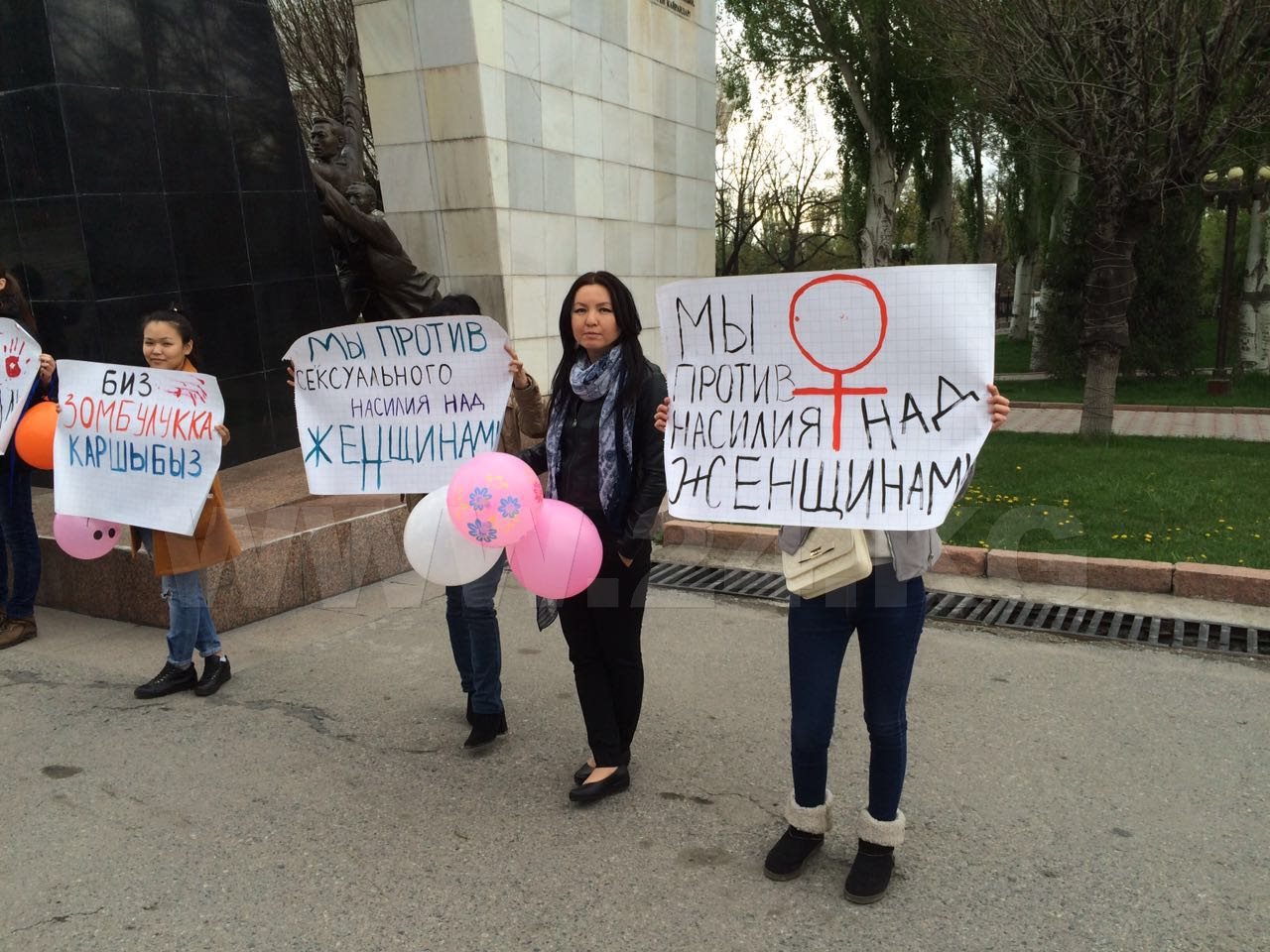 Участники акции (всего десять человек) держали в руках шары и плакаты с надписями «Мы против насилия над женщинами», Stop, «Я не молчу и не боюсь» и другие. За митингом наблюдали сотрудники правоохранительных органов.