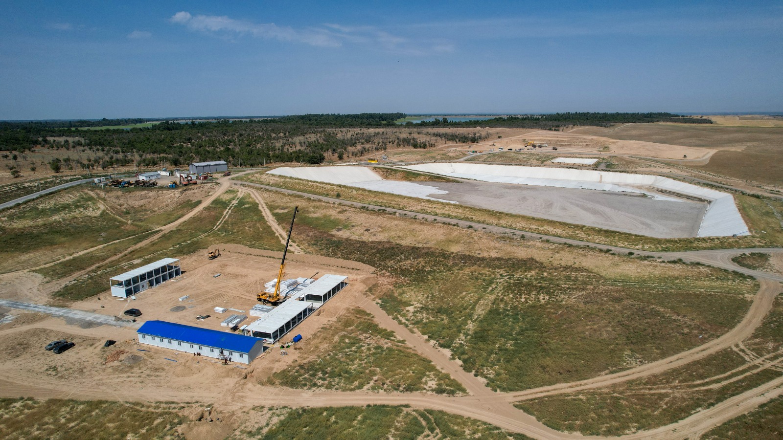 На стадии завершения подготовка места строительства завода, проведены срезки верхнего слоя почвы, вывезены 29 тысяч кубов грунта, строится подъездная дорога. Вывезенным грунтом засыпан мусор.