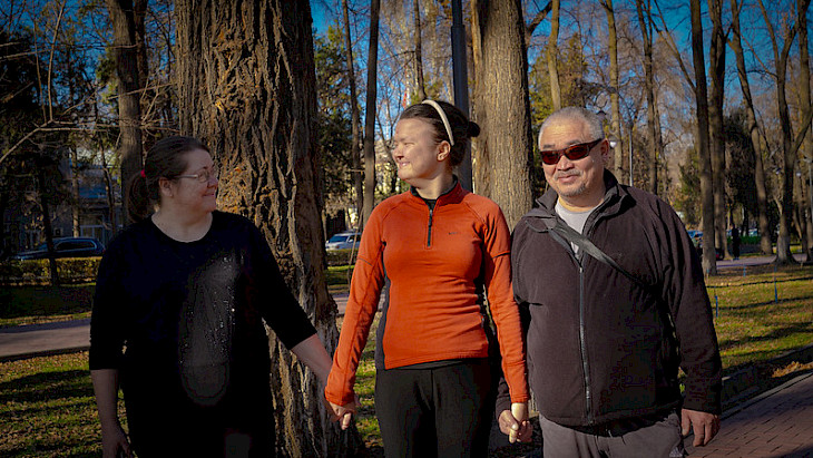 Одна из героинь — 23-летняя Алия Юлдашева участвует в постановке вместе с родителями. По ее словам, когда ее пригласили, она очень обрадовалась, что сможет через искусство рассказать всем о том, что беспокоит.
