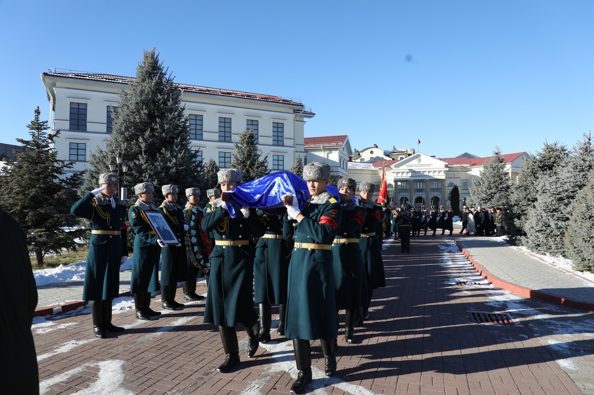 В митинге-реквиеме приняли участие генеральный прокурор Максат Асаналиев, ветераны и сотрудники прокуратуры, депутаты Жогорку Кенеша, представители государственных органов, коллеги и близкие покойного.