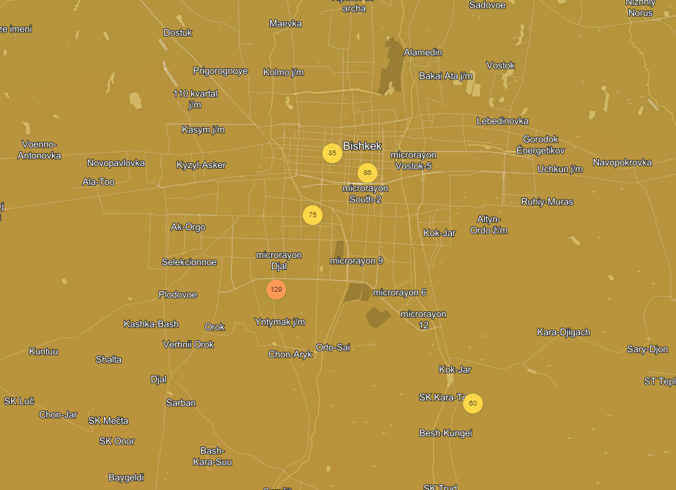 Загрязнение воздуха в Бишкеке на 12 марта. Что показывают датчики