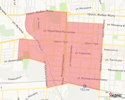• проспектом Дэн Сяопина — рекой Ала-Арчой — улицами Боконбаева — Кулиева — Московской — Фучика — Казакова.