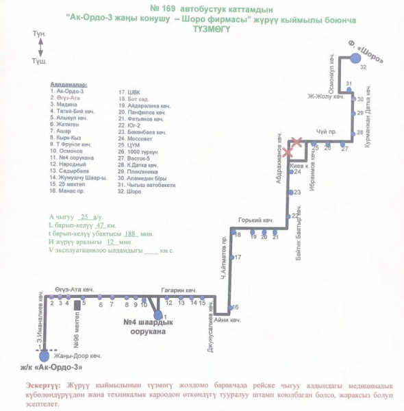 - на отрезке улицы Абдрахманова и улицы Ибраимова маршруты № 5, 11, 16, 21, 25, 36, 50, 104, 129, 135, 152, 169, 216, 222, 227 и 254 будут переведены на улицу Киевскую.
