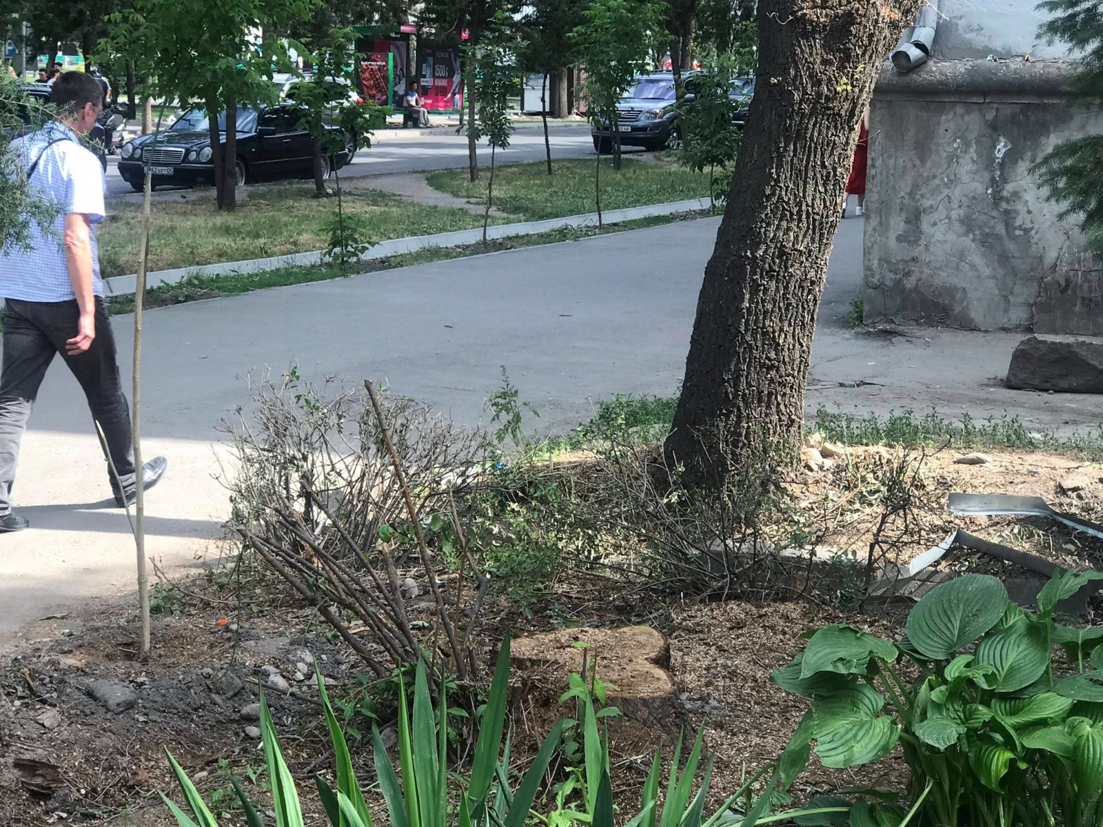 По ее словам, перед приездом мэра с инспекцией на соседний объект рабочие начали рубить сухое дерево, но по пути вырубили и все живое — кусты и цветы, которые только начали цвести.