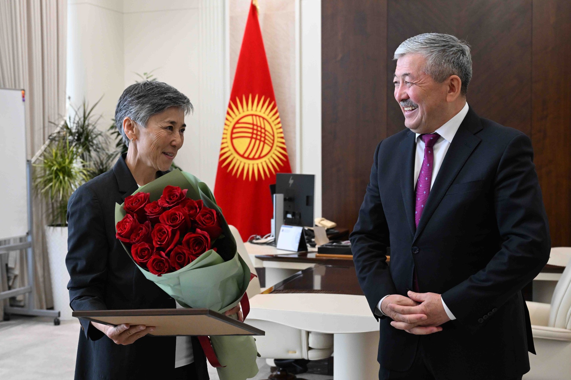 Адылбек Касымалиев тепло поздравил Асель Байбагышеву с историческим достижением, отметив, что ее подвиг является ярким примером для подрастающего поколения и вносит весомый вклад в укрепление международного престижа Кыргызстана.