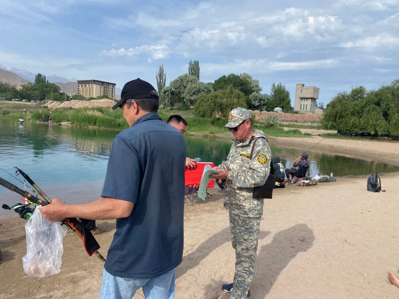 С 4 по 8 июня инспекторы отдела контроля за биоресурсами службы экологического и технического надзора Минприроды провели рейды на территории Иссык-Кульской области. Они проверили более 400 граждан, занимавшихся рыбалкой с удочкой, и составили 53 протокола по факту нарушения правил рыболовства.