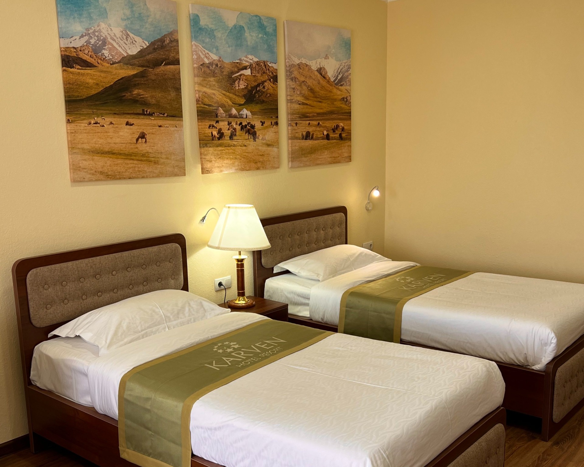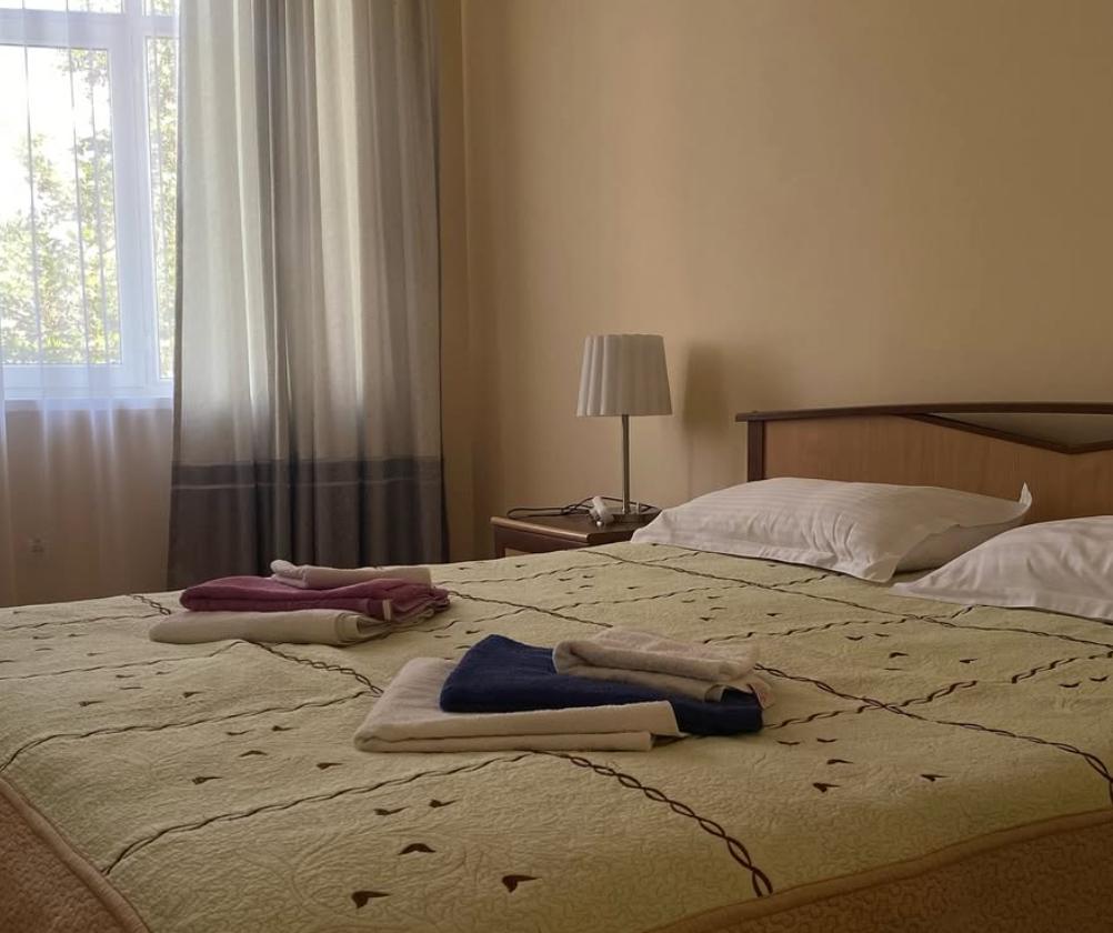 Цены: стандартный номер — 9 тысяч, люкс — 13 тысяч, апартаменты — 34 тысячи сомов.