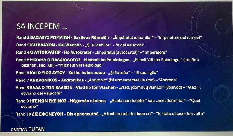 На конференции в Снагове румынский лингвист Мирча Косма представил первую дешифровку надписи. Среди расшифрованных фрагментов: «Влад, правитель валахов», «император румын и валахов», «Михаил VIII Палеолог», «он был убит дважды», «он убежал», «и снова жил», «от своих врагов», «и в месте, где он был похоронен», «он был почитаем как мученик», «он ушел с миром», «всегда хваля Бога».