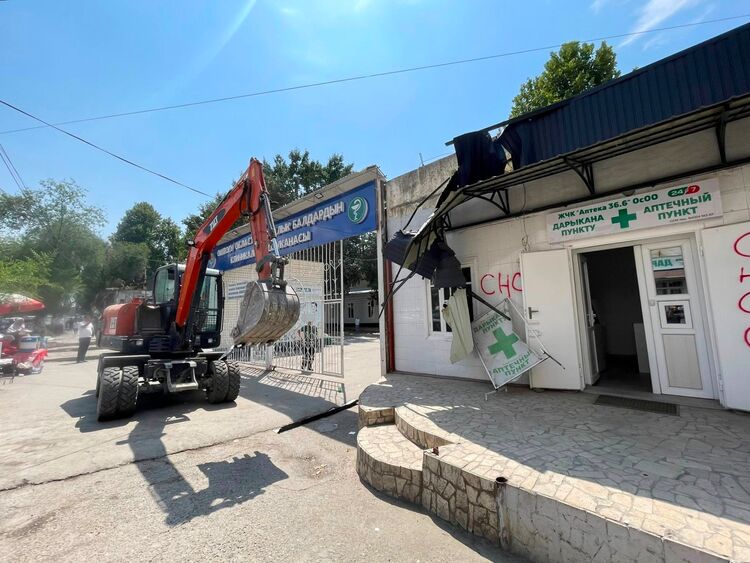 В Оше начались работы по демонтажу стихийно размещенных объектов — столовых, аптек и торговых точек, расположенных на территории Областной межрегиональной детской клинической больницы. Об этом сообщили в пресс-службе мэрии города.