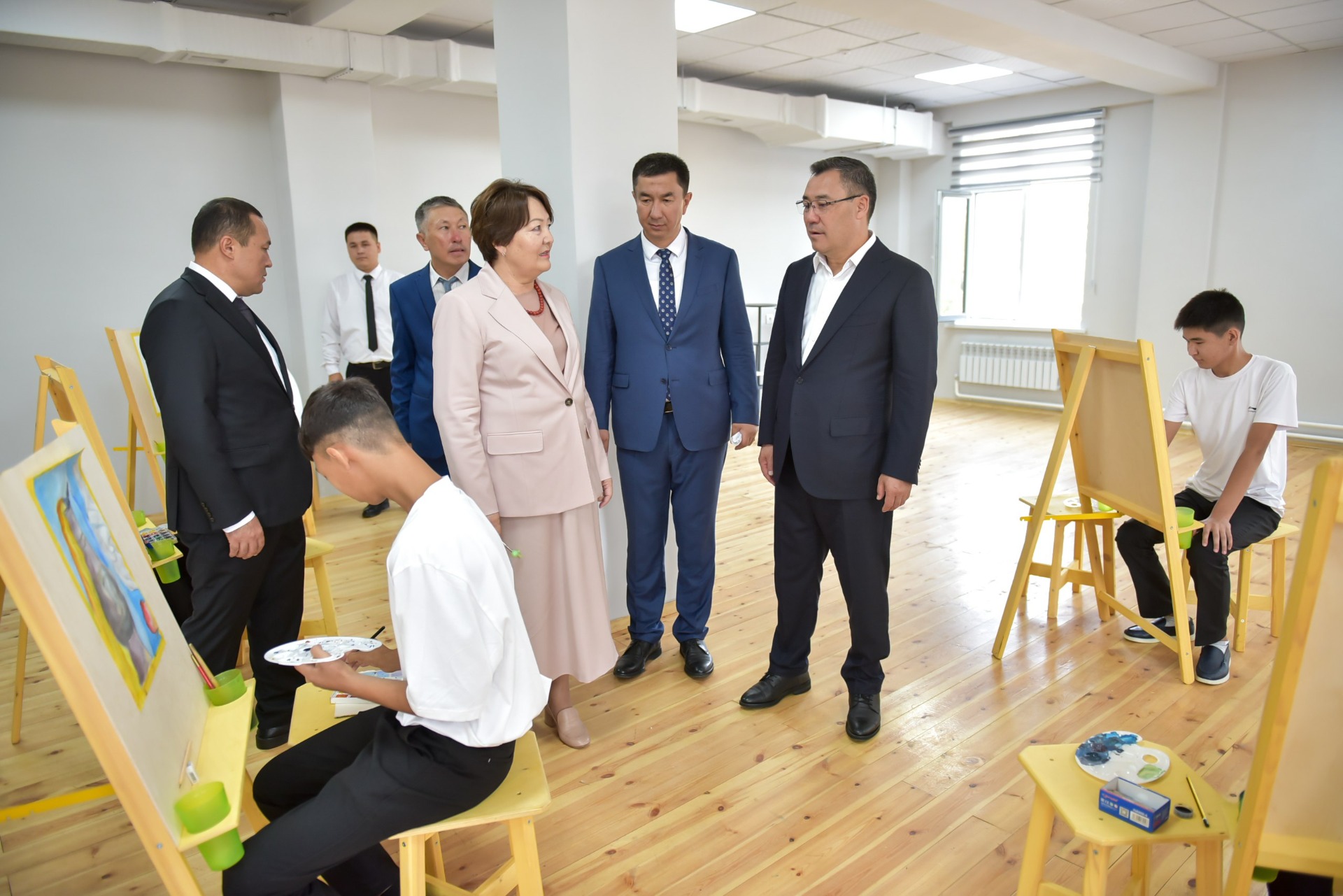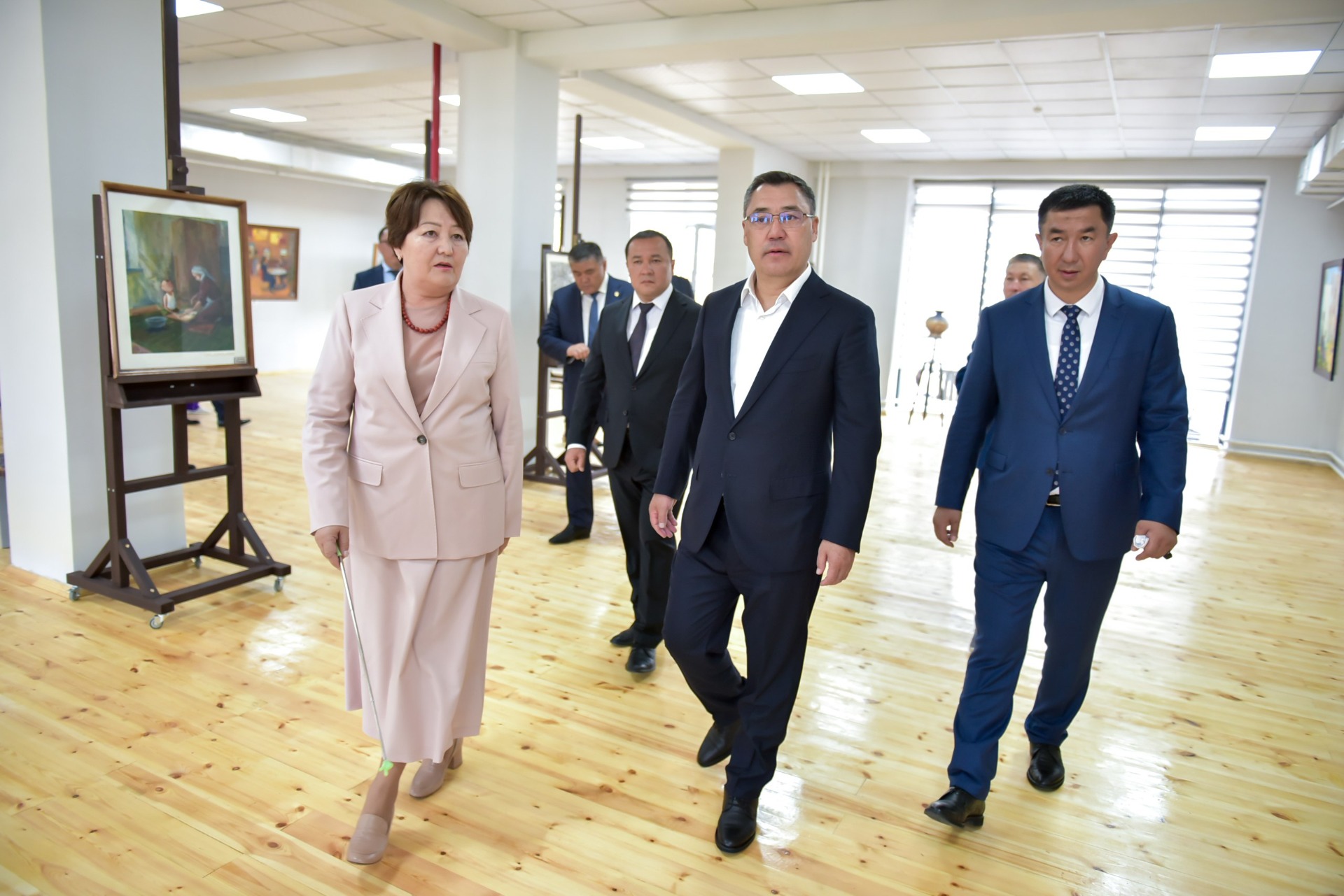 Садыр Жапаров осмотрел современные кабинеты, оборудованные мастерские, художественную галерею и комфортное общежитие. Министр просвещения Догдуркуль Кендирбаева рассказала ему, что в учебном заведении основное внимание уделяют развитию художественного вкуса учащихся и профессиональной ориентации в сфере изобразительного искусства.
