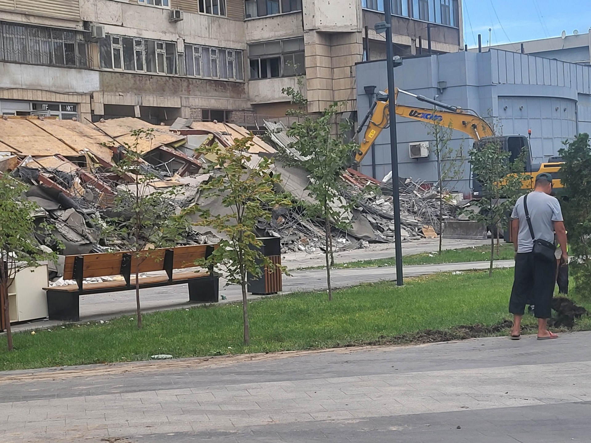 В Бишкеке на пересечении улиц Абдрахманова и Киевской начался демонтаж девяти павильонов. В мэрии пояснили, что на этом месте планируются расширение сквера и благоустройство территории.